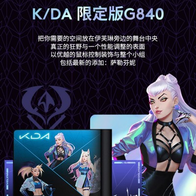罗技(G)G840 XL电竞游戏鼠标垫 大号400*900mm电脑桌垫 KDA定制版鼠标垫 G840