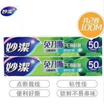 首页 > 用具 > 其他厨房用具 > 妙洁 保鲜膜 妙易撕保鲜膜盒装20CM*50米*2盒 组合装 免刀撕 点断易撕