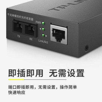 普联(TP-LINK) TL-FC312-20 套装 单模双纤千兆光纤收发器 SC口光电转换器 20公里一对