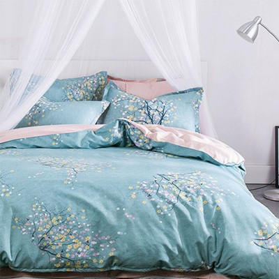 PLOVER啄木鸟清平乐-皇冠-花语蓝-鲸鱼-春暖花开-几何方块澳绒磨毛四件套200cm*230cm 春暖花开 200*230