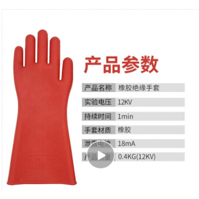 绝缘手套 劳保维修橡胶手套耐磨 12kv平板 基础款