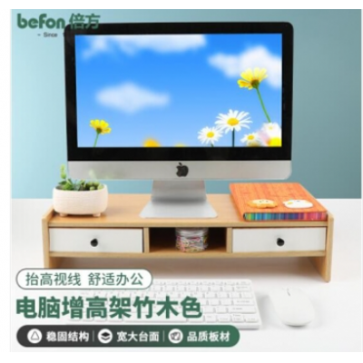 倍方 电脑显示器增高架 显示器支架 白抽屉电脑增高架竹木色 QJ.524