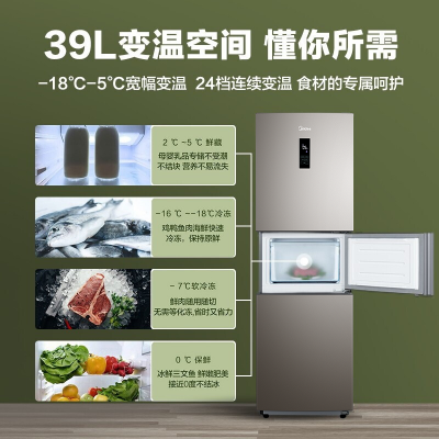 美的(Midea)247升冰箱节能低音中幅宽门 变温三门三温家用电小冰箱BCD-247WTM(E)
