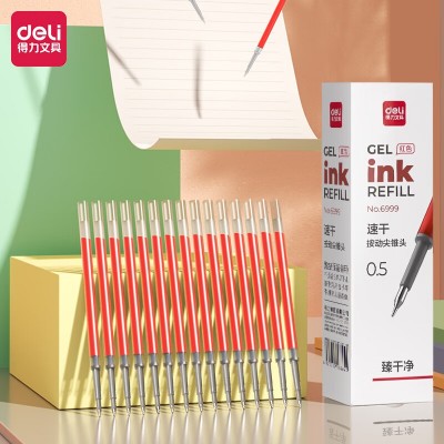 得力(deli)中性笔替芯速干按动尖锥头0.5mm红色20支/盒 6999
