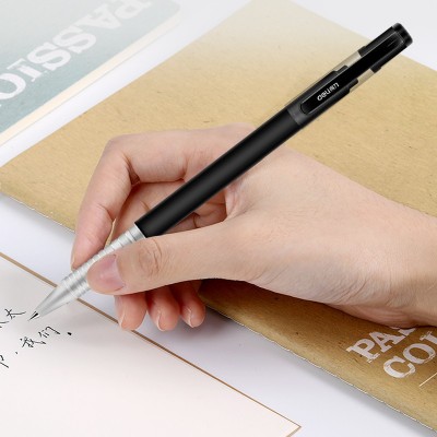 得力(deli) 12支/盒 S77中性笔0.5mm金属喷漆笔子弹头签字笔黑色