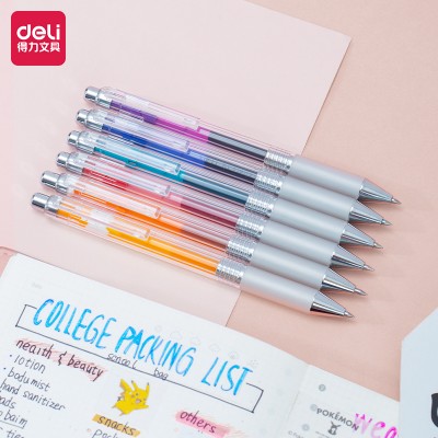得力(del) A123彩色中性笔0.5mm子弹头糖果6色按动笔签字笔 荧光笔水笔手账笔 6支套装