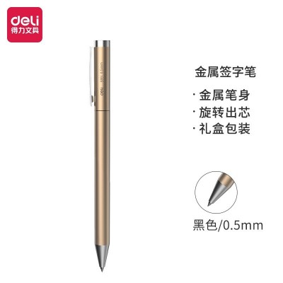 得力(deli)0.5mm金属旋转中性笔签字笔 香槟金DL-S99