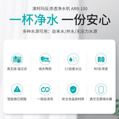 首页 > 电气设备 > 饮水器 > 澳柯玛(AUCMA)城乡净水器 ARB-100BJ自吸式净水器商用家用/公司 RO反渗透纯水直饮机智能提示 自吸净水器