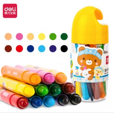 得力水溶性油画棒丝滑蜡笔炫彩棒12色72054
