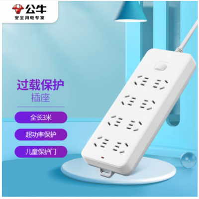 首页 > 建筑建材 > 开关插座 > 公牛(BULL)过载保护插座/插线板/插排/排插/接线板/拖线板 8位总控全长3米 GN-217