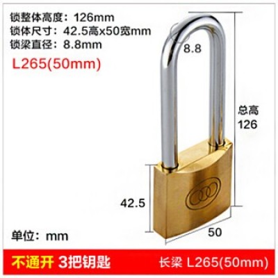 三环 长梁黄铜挂锁纯铜锁头 L265铜长梁50mm-不通开