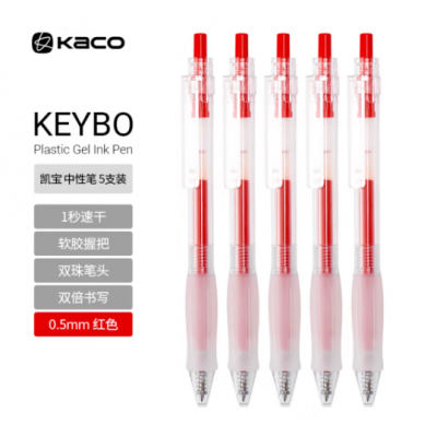 首页 > 办公用品 > 文具 > KACO红色按动中性笔透明笔杆舒适软握手0.5mm子弹头改错批改作业红色签字笔 5支装红色