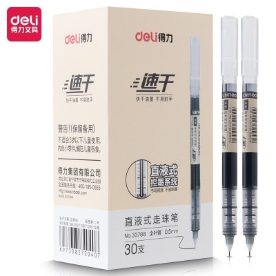 得力(deli)33788速干直液笔签字笔 0.5mm全针管中性笔 黑色 30支/盒(盒)