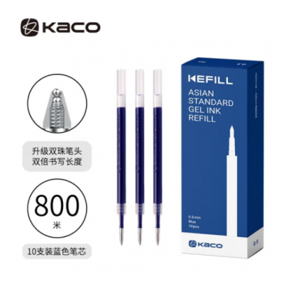 首页 > 办公用品 > 文具 > KACO亚规Kefill双倍书写长度按动中性笔芯0.5mm双球珠子弹头签字笔替芯蓝色不漏墨10支装/盒 K1622