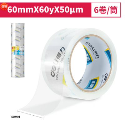 得力30323封箱胶带60mm*60y*50um*6卷/筒(高透)