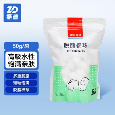 振德(ZHENDE)脱脂棉球 家庭护理普通级50g/袋 皮肤伤口清洁棉球