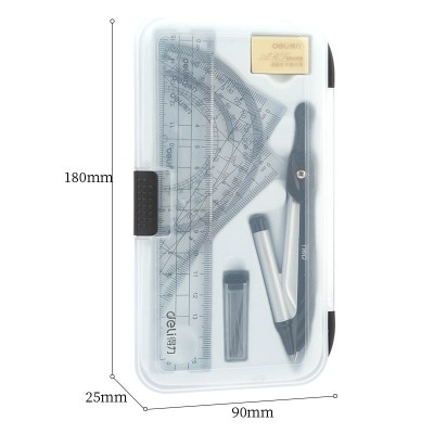 首页 > 办公用品 > 文具 > 得力(deli)绘图考试圆规套尺套装(圆规_铅芯_橡皮_直尺_三角尺_2_量角器)7件套72150