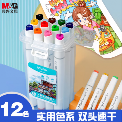 首页 > 办公用品 > 文具 > 晨光(M&G) APMV0922 12色三角杆双头马克笔套装 纤维头
