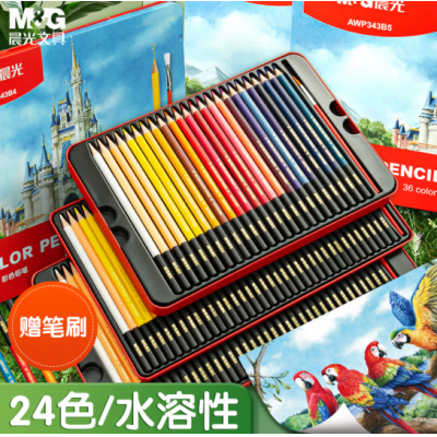 晨光(M&G) AWP343B4 24色水溶性彩铅铁盒 手绘涂色彩色铅笔 内含笔刷