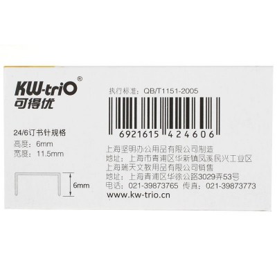 可得优(KW-triO)0246 12号镀锌丝订书针 24/6 1000枚/盒 20盒/条