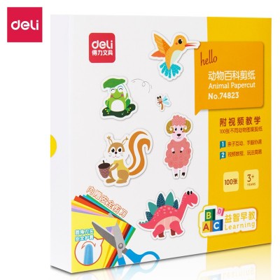 得力(deli)74823 100张140mm*140mm儿童剪纸 动物百科认知剪纸套装