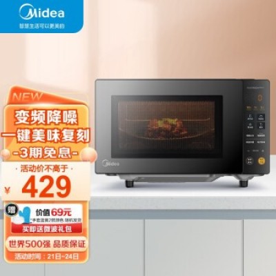 美的(Midea)微碳系列 20L家用变频微波炉 800W微波速热 一键智能菜单 钻石背板 微晶面板加热(PM20M2)