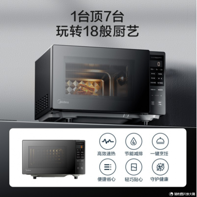 美的(Midea) 微波炉家用 800W平板速热 智能菜单 智能变频 微波杀菌 PM20M3 20L 黑色