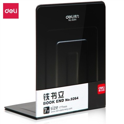 得力(deli)7英寸(高17cm)金属无缝铁书立架 办公书靠2片_付 办公用品 黑色9264