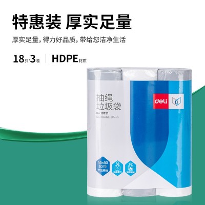 得力(deli)45*50cm抽绳式垃圾袋 便携牢固大容量 居家办公用品 3卷装 白色18751