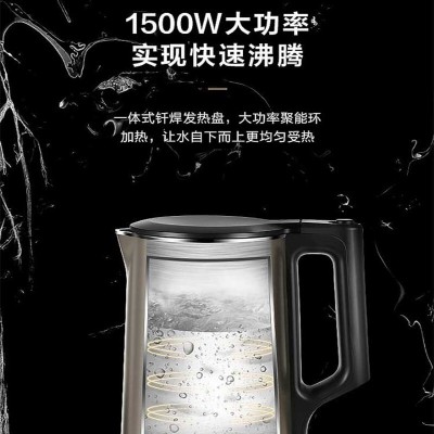 美的(Midea)电热水壶 家用1.7L烧水壶 双钢防烫防干烧 热水壶 304不锈钢 电水壶 PJ17A01