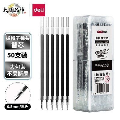 得力(deli)0.5mm黑色子弹头中性笔芯 水笔签字笔替芯 50支/桶33405 办公用品