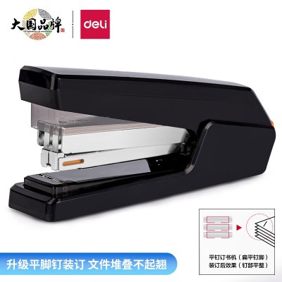 首页 > 办公用品 > 文具 > 得力(deli)平钉省力型订书机/订书器 单指按压平钉包角 黑色0433