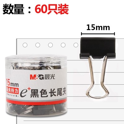 晨光(M&G)ABS92737 黑色长尾夹 15mm 60枚/筒