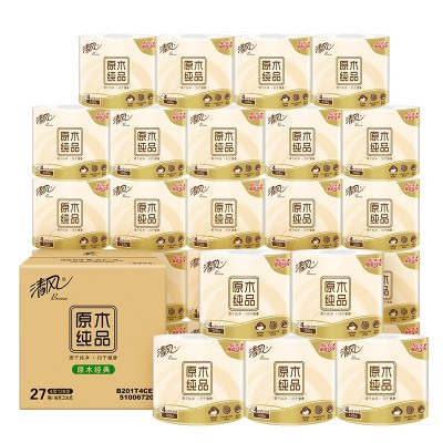 清风卷纸 原木纯品128克27卷 4层加厚 卫生纸卷筒纸 纸巾卷纸 整箱