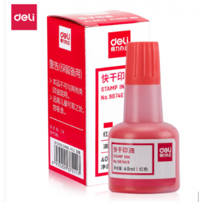 得力/deli 9874ES 印台/印泥/印油 40ml财务印章快干清洁印油印泥 财务用品 办公用品 红色