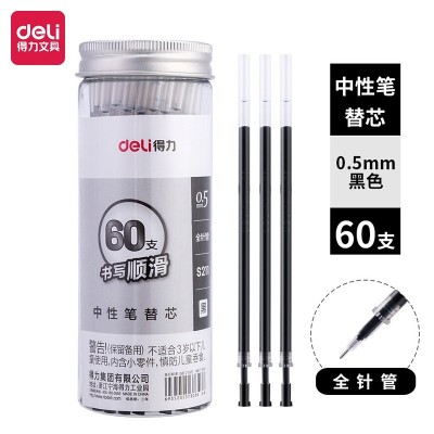 得力(deli)0.5mm办公大包装中性笔替芯 学生全针管签字笔芯 60支/桶SX-S211
