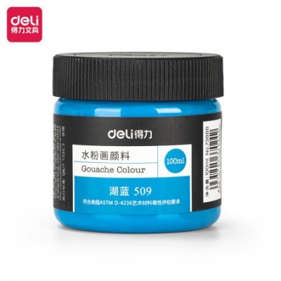 得力(deli)水粉颜料 100ml大容量罐装画画美术专用 湖蓝