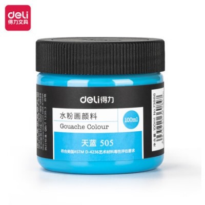得力(deli)水粉颜料 100ml大容量罐装画画美术专用 天蓝