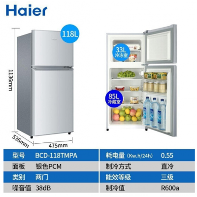海尔/Haier BCD- 118升双门节能直冷冰箱【118TMPA】