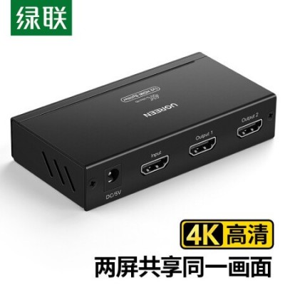 首页 > 信息化设备 > 数据线 > 绿联 HDMI分配器一进二出 1进2出4K数字高清视频分屏器 笔记本电脑电视盒子接显示器投影仪一分二 黑色 40201