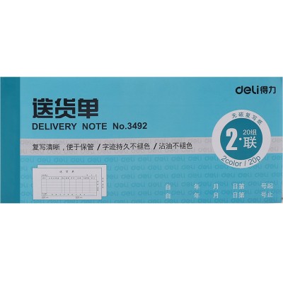 首页 > 办公用品 > 文具 > 得力 3492 二联送货单 蓝色 10本装