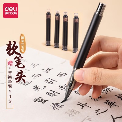 得力(deli)钢笔式毛笔 软笔书法练习毛笔小楷笔可加墨可换芯 成人初学者学生入门字帖练字 75510