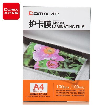 首页 > 办公用品 > 文具 > 齐心(Comix) 100张/盒 A4 100MIC M4100 透明高清照片塑封膜 相片护卡膜 过塑膜
