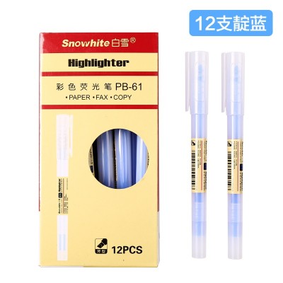 白雪荧光笔学生用糖果色标记号笔一套粗划重点彩色银光笔套装文具 PB-61 12支靛蓝色盒装