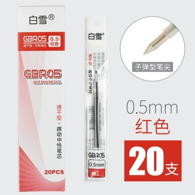 白雪GBR05按动笔芯0.5mm红蓝绿橙紫黑色水笔芯替芯子弹头替换学生按压笔芯 红色20支+送笔1支