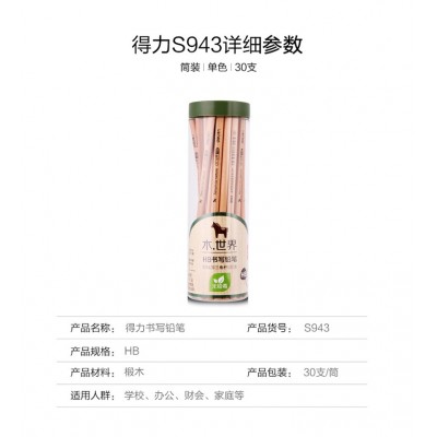得力(deli)HB原木书写铅笔 三角杆素描绘图铅笔 30支/桶S943