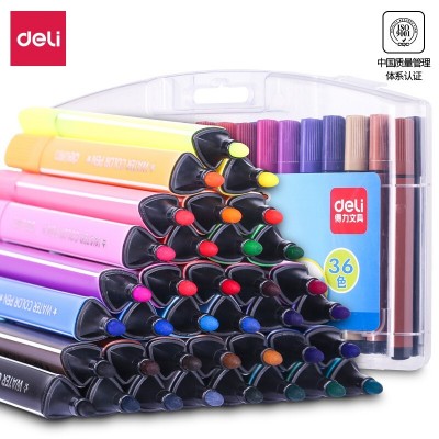 得力(deli)可水洗水彩笔 中考考试礼物绘画勾线涂色颜色文具玩具美术用品画材 粗三角杆36色/盒 70659