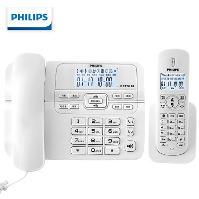 首页 > 通信设备 > 普通电话机(不包含移动电话) > 飞利浦 PHILIPS 数字无绳电话机 无线固定座机电话子母机办公家用 一键拨号/电话本 DCTG188一拖一 白色