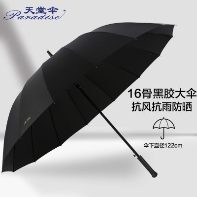天堂伞 加大加固黑胶70cm*16骨自开直杆商务晴雨伞10037D黑色