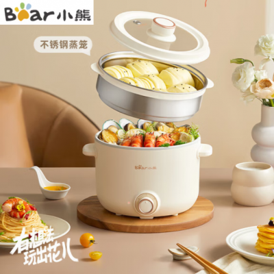 小熊电煮锅 泡面火锅宿舍小电锅 多功能多用途电热锅 2.5L蒸煮一体蒸屉蒸笼电蒸锅 DRG-E25H1 SKU:yzwhyp300404